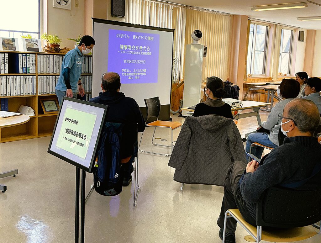 みんなでまちづくり「健康寿命を考える」 2026.02.28活動報告 本日、のぼりん まちづくり講座「健康寿命を考える」を開催いたしました。 「健康」からまちづくりを考える~スポーツが生み出す社会的価値について 講師を招き楽しく解説して頂きました。 Tweet Share Hatena Pocket RSS feedly Pin it 活動報告